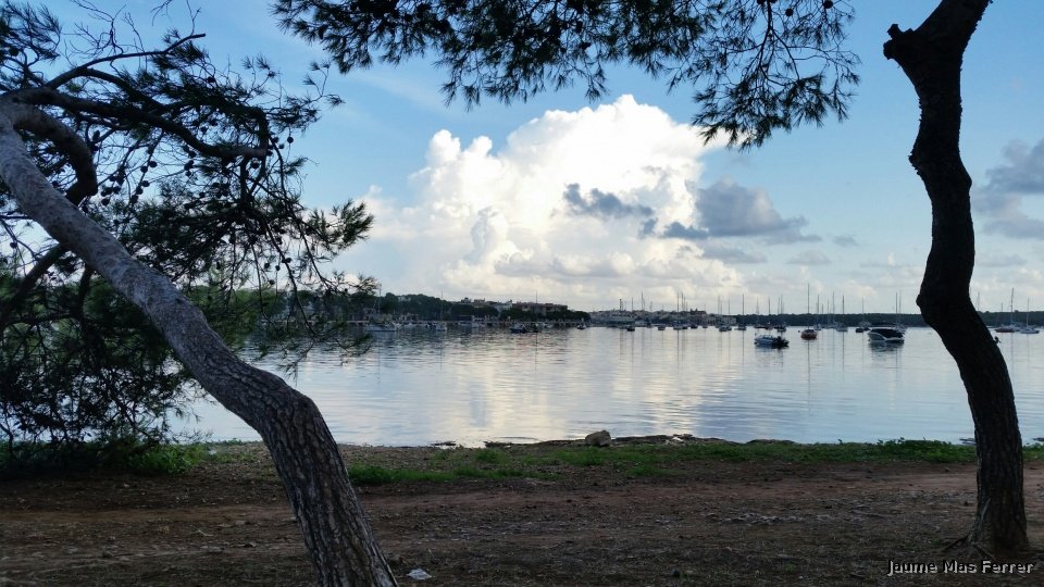 Mañana tranquila con algunas nubes de desarrollo, nucleo afectando la zona Norte de Mallorca visto desde Portocolom. 28-09-2015.