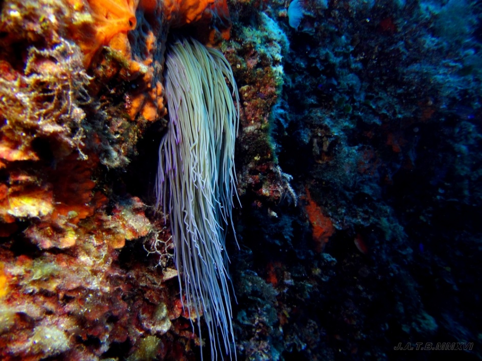 Bienvenido / Fotografias Submarinas / Fotografías Submarinas de Juan A. Torres / ANEMONA COLGANTE EN PARED SUBMARINA