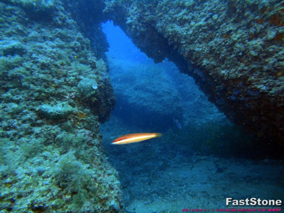 Este es un fondo -30,00m donde dos grandes rocas forman un pasillo que da acceso a una zona de grandes piedras.
